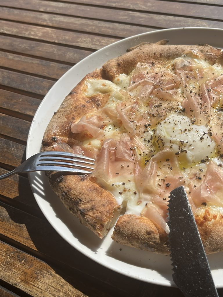 マルゲリータと生ハムと温玉?のピザを注文して、2人で美味しいの連呼でした(^^)